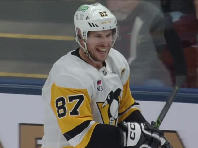 Watch as Pittsburgh Penguins forward Sidney Crosby tucks a backhand shot through the legs of Columbus Blue Jackets goaltender Jet Greaves to lift his team to an overtime win with a goal.